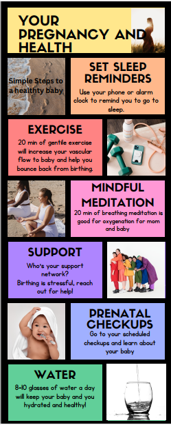 Looking for some quick “To do’s” to guide your pregnancy journey? Here is a useful infographic that I created in my Bachelor of Science in Nursing program. It has proved to be a great starting point for a variety of people. It can be used for the whole family to create life/health balance. This infographic has been posted at Lincoln Co. Hospital for educational purposes.